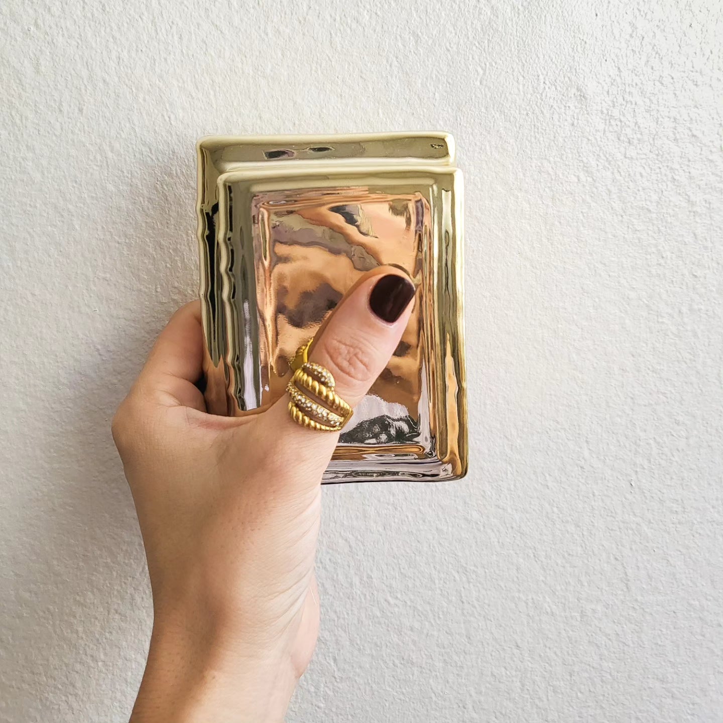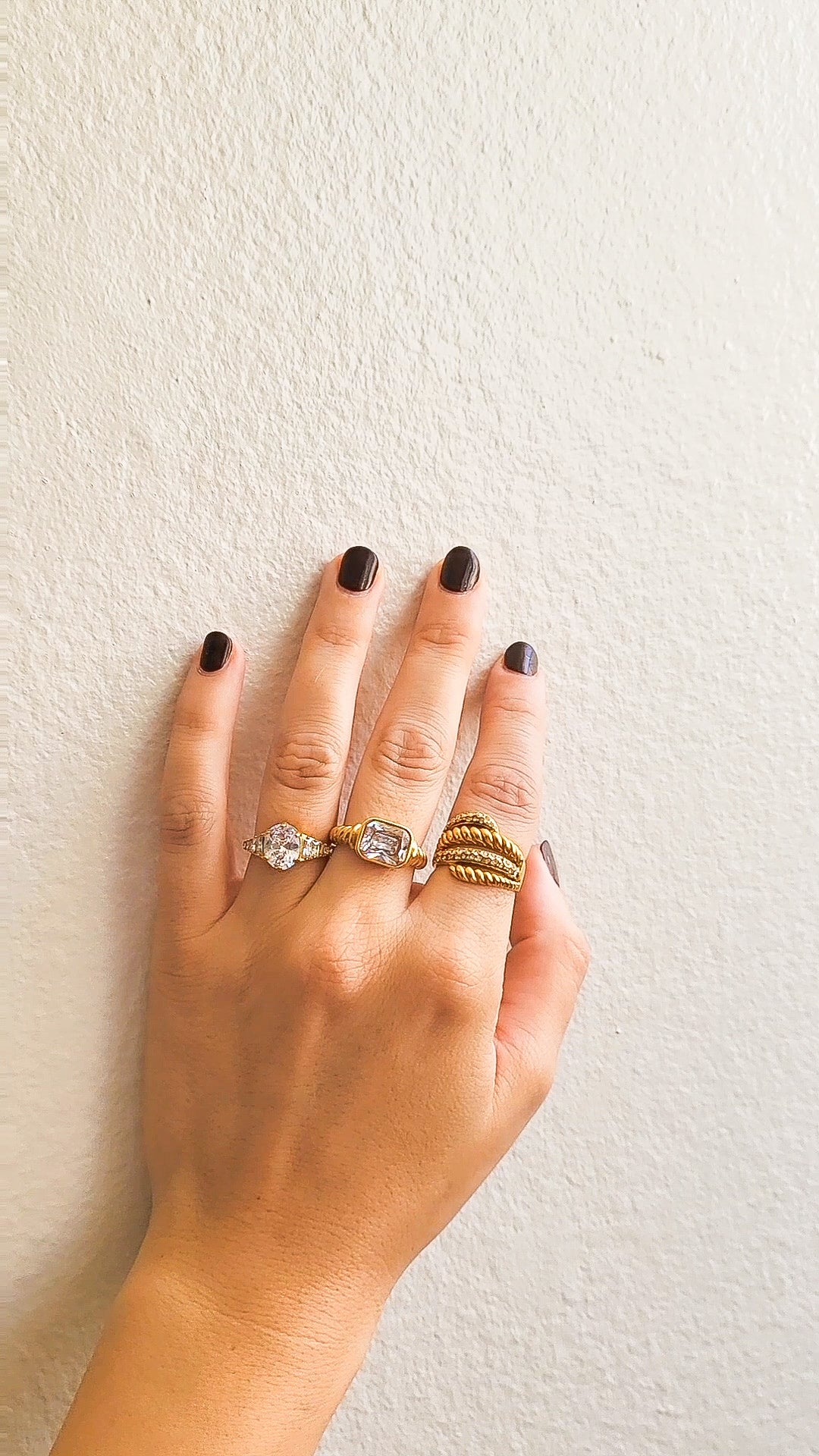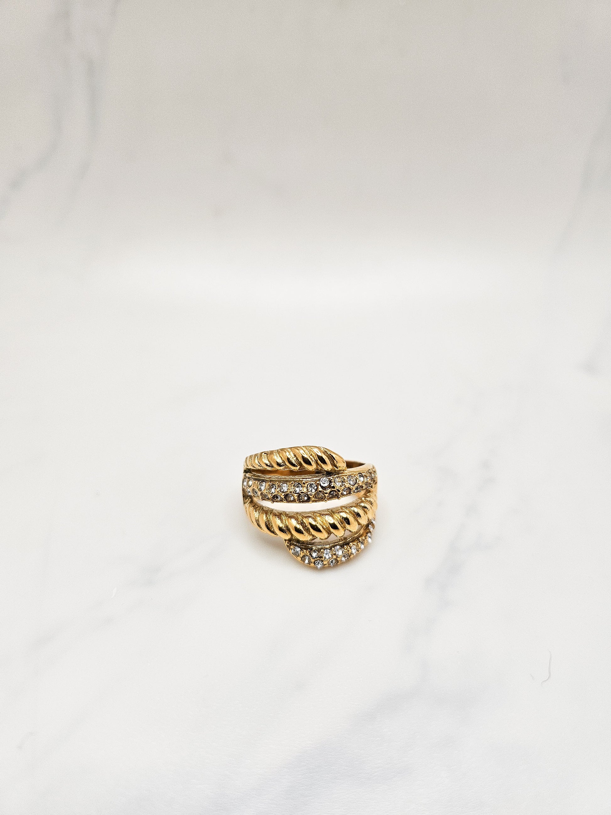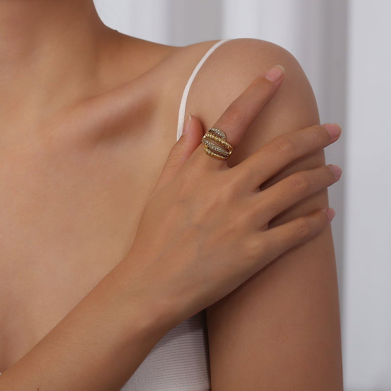 This chunky ring gives off the appearance of multiple stacked rings, making it a versatile addition to any jewelry collection. Its timeless design exudes elegance and can be worn for any occasion. For a flawless pairing, consider our Mimi twisted hoops.