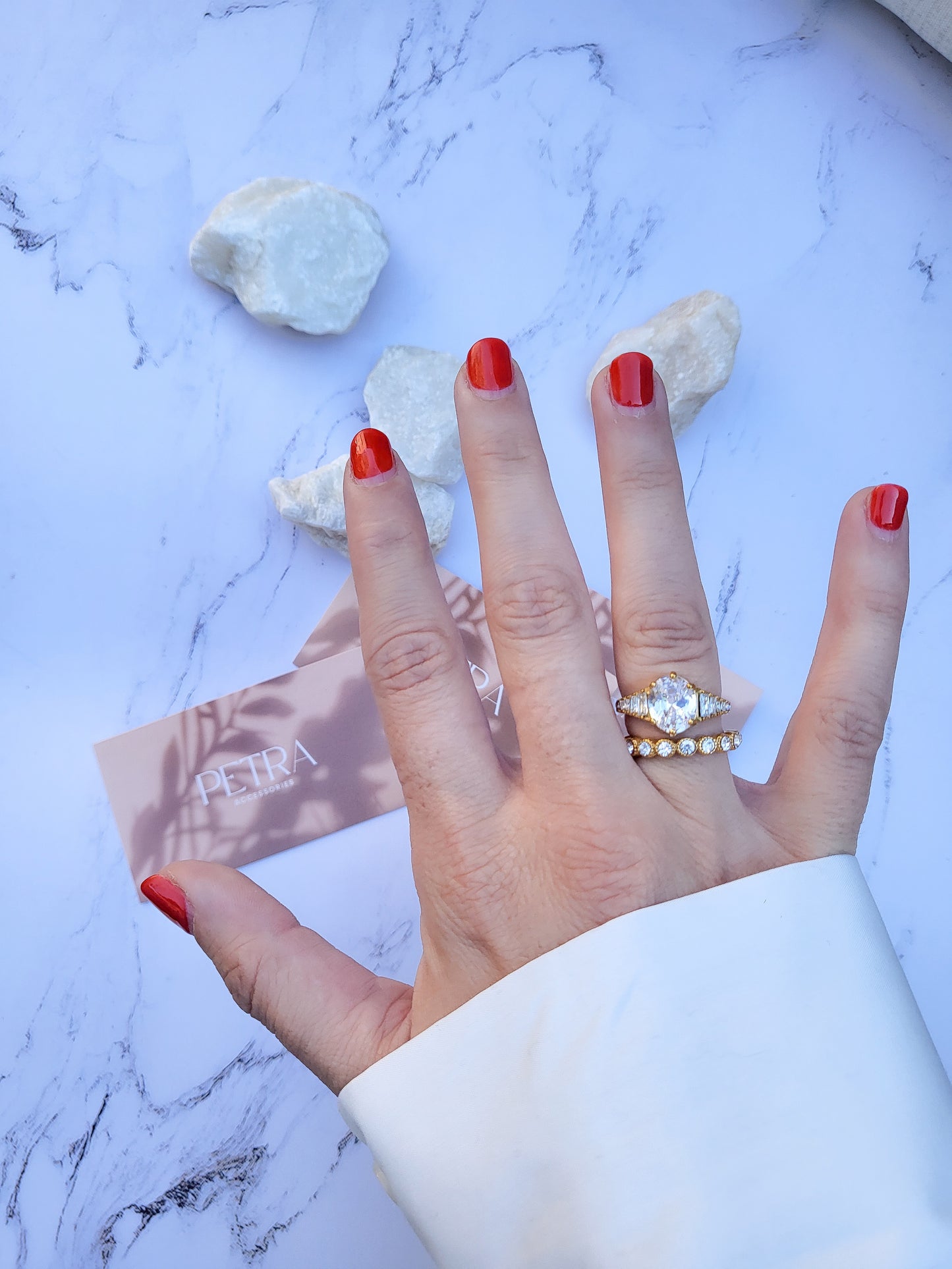 Very shiny and great piece. Vintage look. Great engagement ring. It gives romantic and classy look to every outfit. Stack it with our Daniela big zircon ring for perfect match.